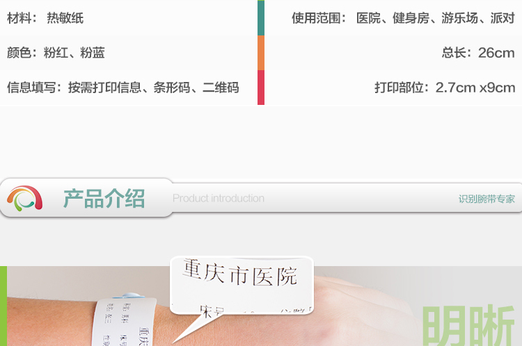 廣州匯康生產(chǎn)銷售身份識別腕帶,成人識別帶,兒童識別帶,母嬰識別帶,廣泛用于醫(yī)院病人識別和娛樂場所的客戶識別,產(chǎn)品遠銷歐美等國家及其他地區(qū).