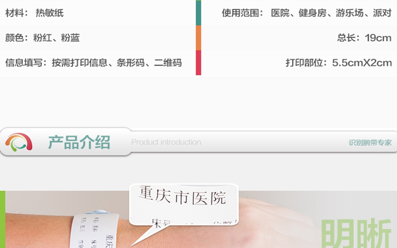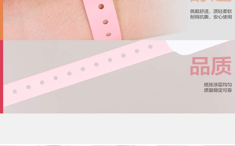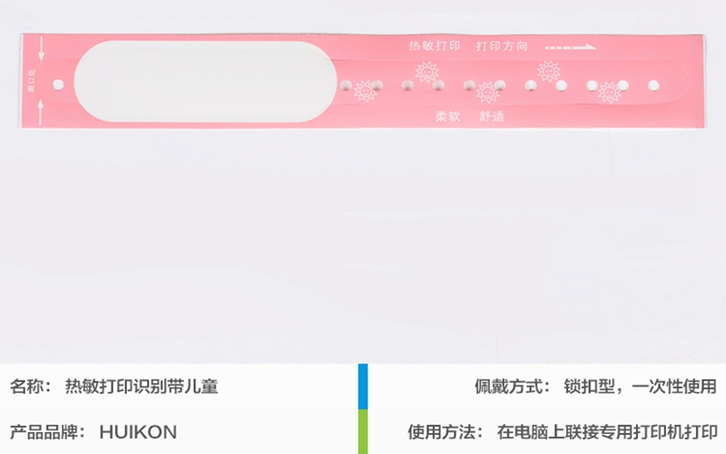 簡介:型號:1823品牌:匯康顏色:粉紅總長:27mm*189mm使用部分:20mm*180mm打印部位:20mm*65mm打印方式:熱敏打印可掃描期:60天包裝:100條/卷保質期:3年佩戴方式:鎖扣型,一次性使用特性防水防酒精、只需打印機與一卷腕帶即可實行打印,無需其他耗材作用標識病人住院信息,防止護理用藥錯誤,降低醫(yī)療事故風險適用人群:2歲以上的兒童