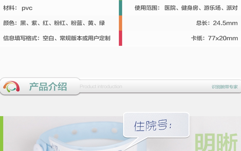 廣州匯康生產(chǎn)銷售身份識(shí)別腕帶,成人識(shí)別帶,兒童識(shí)別帶,母嬰識(shí)別帶,廣泛用于醫(yī)院病人識(shí)別和娛樂場所的客戶識(shí)別,產(chǎn)品遠(yuǎn)銷歐美等國家及其他地區(qū).